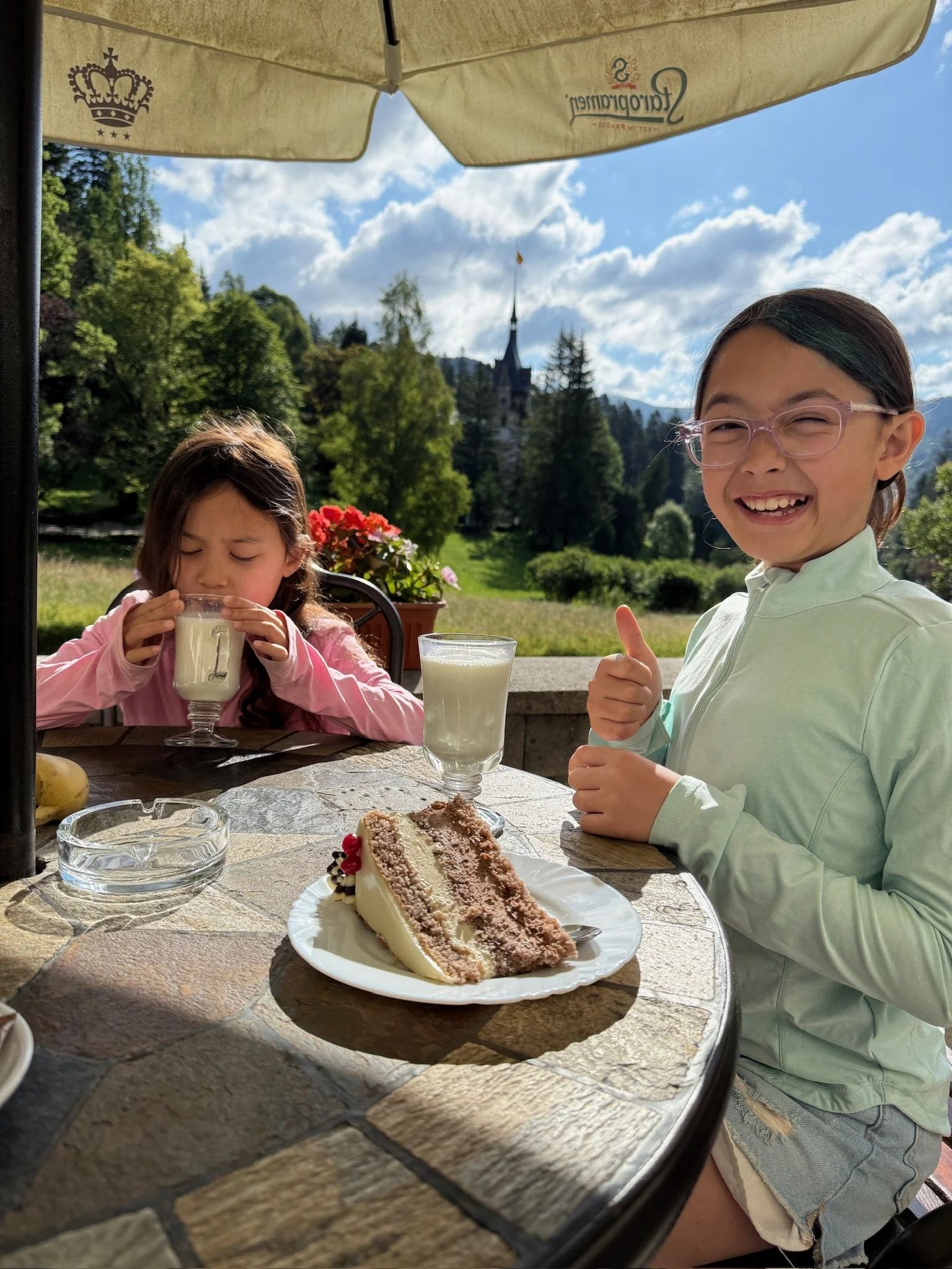 We couldn’t leave Romania without seeing some castles. We visited two of them near Brasov. The first that we went to was Peles (pelish), which King Carol built, but the castle wasn’t actually in Transylvania. It was in another region of Romania, because at that time, Transylvania didn’t belong to Romania, but King Carol really wanted it, so he built Peles as close to Transylvania as he could. It was 5 min from the border, and it was really decorative and grand. In the main hall, there was also a ceiling that opened up so his guests could see the sky, and the rooms had themes from different countries, like the Italy room, the Hungary room, the Turkey room, and the Japan room. We also visited Cantacuzino Castle. If you’ve watched Wednesday (the TV show), that’s where it’s filmed! We also got to see Prejmer fortress. Back then, each family got their own room in the fortress. There was also a wall with holes lining it, so you could do your business into a kind of moat outside the fortress. Since the invaders had to walk really far, when they would cross the moat, their cuts would be infected with…you know what.