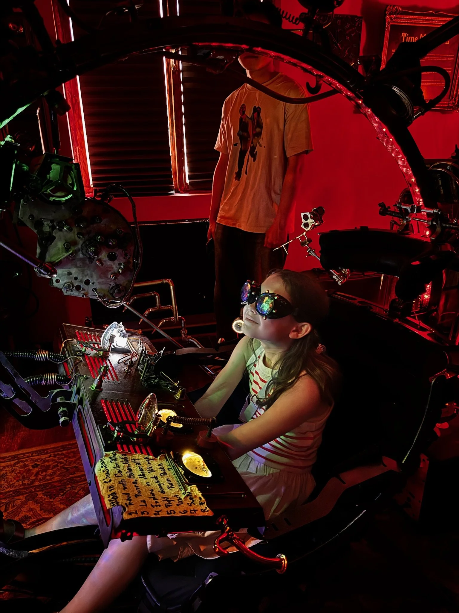 Me in a “time machine” with weird bug goggles on.