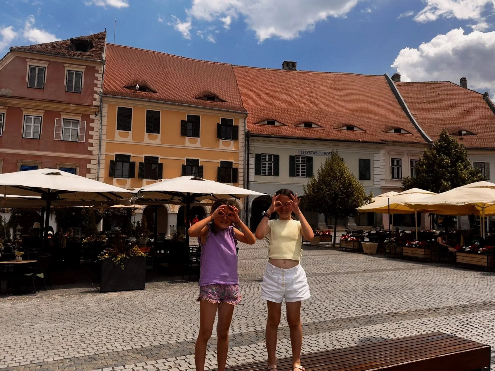 My sister and I walking in Sighișoara. Does it look scary?